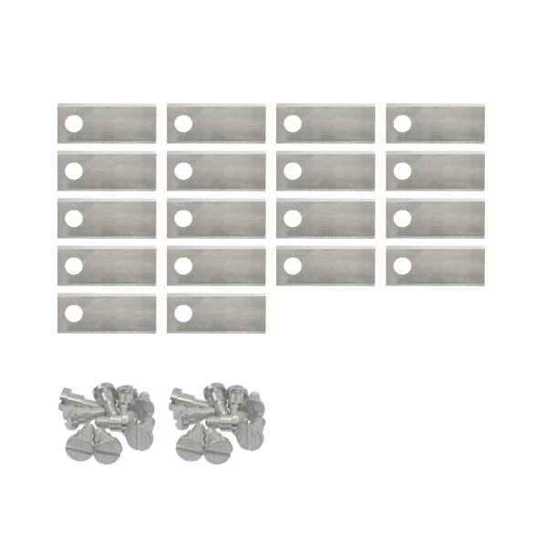 Dies ist ein Mähroboter Messer für Belrobotics - Satz mit 18 Stück. Diese Messer sind für alle unten aufgeführten Modelle dieser Marke geeignet und können universell verwendet werden. Die Messer sind aus 0,6 mm massivem Stahl gefertigt, wodurch sie sehr stark sind. Außerdem sind die Messer auf beiden Seiten, unten und oben, geschliffen, was das Ergebnis noch besser macht. Bei den Mährobotern von Belrobotics werden mehrere dieser kleinen Messer gleichzeitig eingesetzt. Diese Messer sind an einer oder mehreren Mähscheiben befestigt. Während sich diese Mähscheiben drehen, wird das Gras geschnitten. Um Ihren Rasen nicht zu beschädigen und gelbe Flecken zu vermeiden, ist es wichtig, dass Sie immer mit scharfen Messern mähen. Tauschen Sie daher die Messer aus, sobald sie abgenutzt oder stumpf geworden sind.Die Messer Ihres Mähroboters lassen sich leicht selbst austauschen, die entsprechenden Schrauben sind im Lieferumfang enthalten. Das Auswechseln der Messer ist einfach und kann in wenigen Minuten erledigt werden.Wir raten davon ab, die Mähroboter Messer für Belrobotics Mähroboter zu schärfen. Durch das Schleifen werden die Messer noch dünner, so dass sie viel schneller brechen. Diese Bruchstücke der Messer landen dann im Rasen, was zu gefährlichen Situationen führen kann. Die Messer halten im Durchschnitt 2 bis 3 Monate. Das bedeutet, dass Sie sich bis zu 13 Wochen lang keine Sorgen um Ihren perfekten Rasen machen müssen. Tauschen Sie die Messer aus, sobald sie stumpf oder gebrochen sind. So haben Sie im Handumdrehen wieder einen makellosen Rasen.